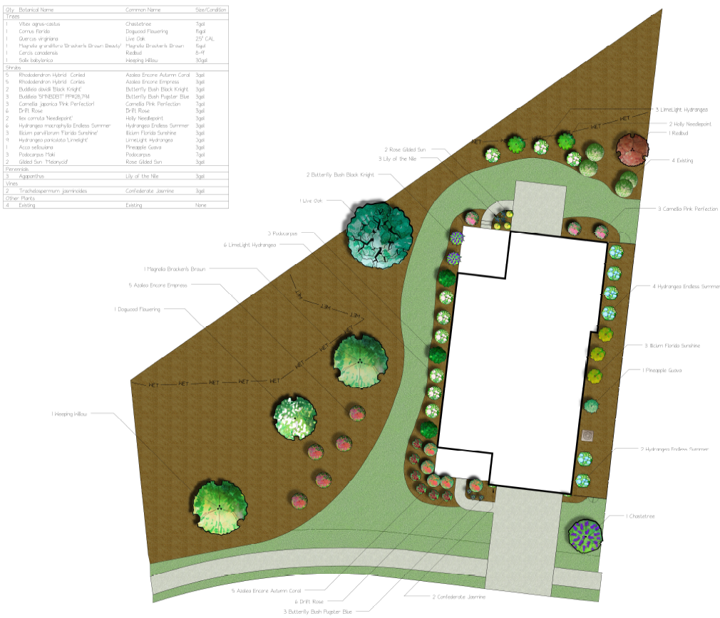 And here is a look at our "denied" landscaping 😄As you can see, very little grass. We will likely widen the grass on the left side and add some down the right side. I will update y'all when I get the new plans. Hopefully they will be approved!